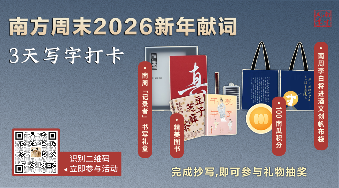 完成一次抄写,即可参与礼物抽奖南周“记录者”书写礼盒、精品好书、南周文创帆布袋、南周App积分。一份心意伴您奔赴崭新的2026年。