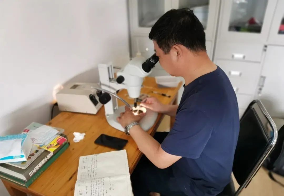 众所周知,河姆渡遗址以稻作农业遗存著称,而井头山遗址也发现了少量稻作遗存。在考古工地的一间工作室里,浙江省文物考古研究所科技考古室主任郑云飞研究员正在用双筒显微镜细细观察淘洗出的稻作遗存。