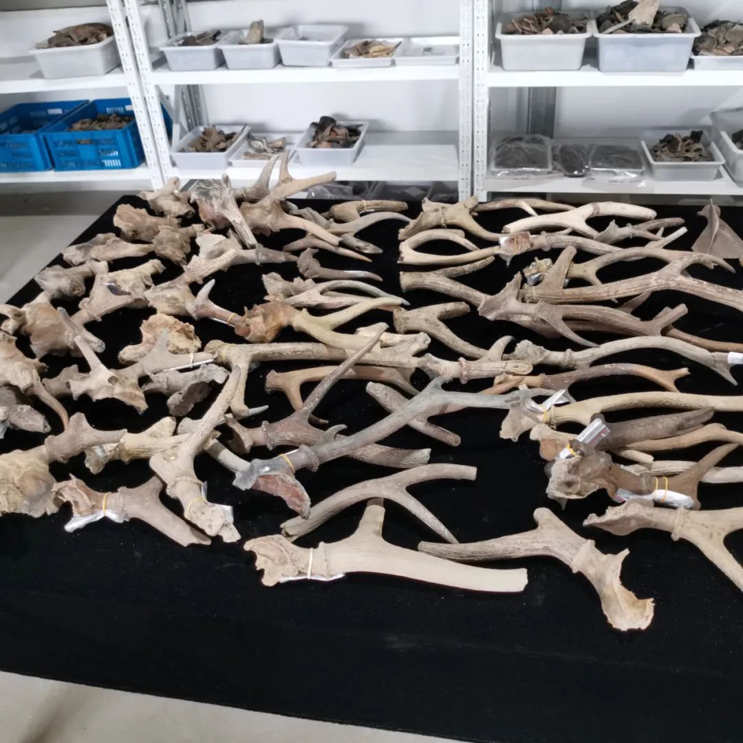 井头山遗址出土的大量鹿角。新华每日电讯记者冯源摄