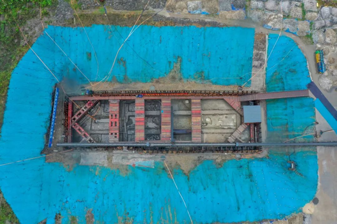 “在国内还没有哪家同行接手过这样的考古工地项目,我们采用了H型钢和U型槽钢作为围护桩,再作了一道预应力型的钢组合支撑。”胡琦介绍说,整个基坑围护结构均为工厂化生产的预制钢构件,使用的是他们自主研发的装配式基坑围护新技术,力求安全可靠、施工扰动小。与传统围护方式相比,它可以免用水泥、混凝土等材料,最大限度地避免了对文物的影响。