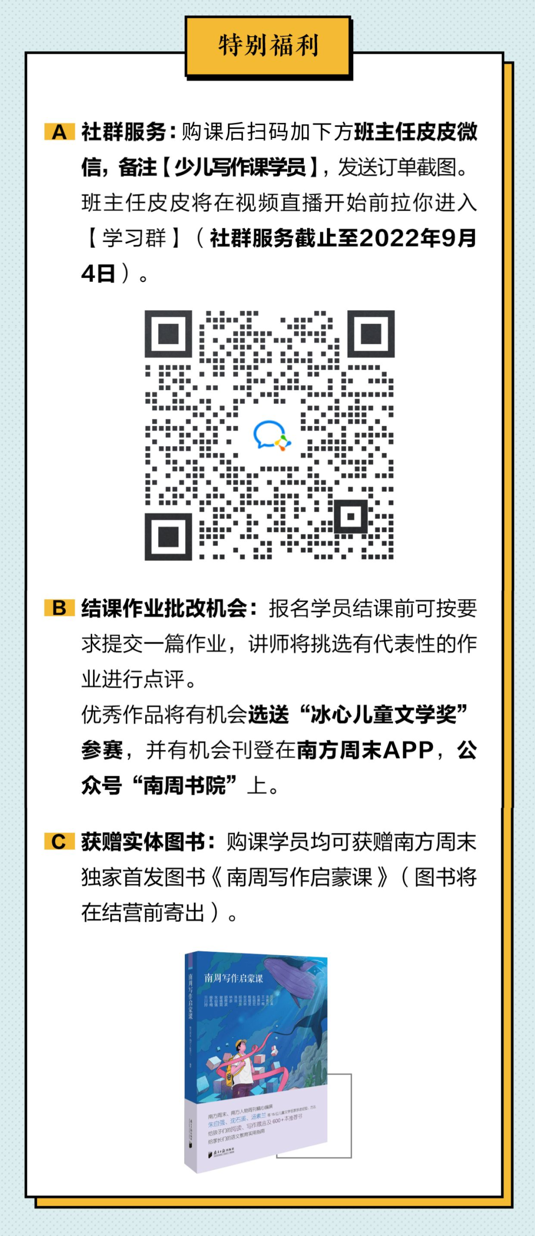 过去三年,南方周末在相继推出了多门成人写作课后,一直被用户呼唤,能否为孩子们也打造一门写作课?为了响应大家的需求,我们花了一年时间,针对9-16岁的青少年研发了《南方周末少儿写作课》。
