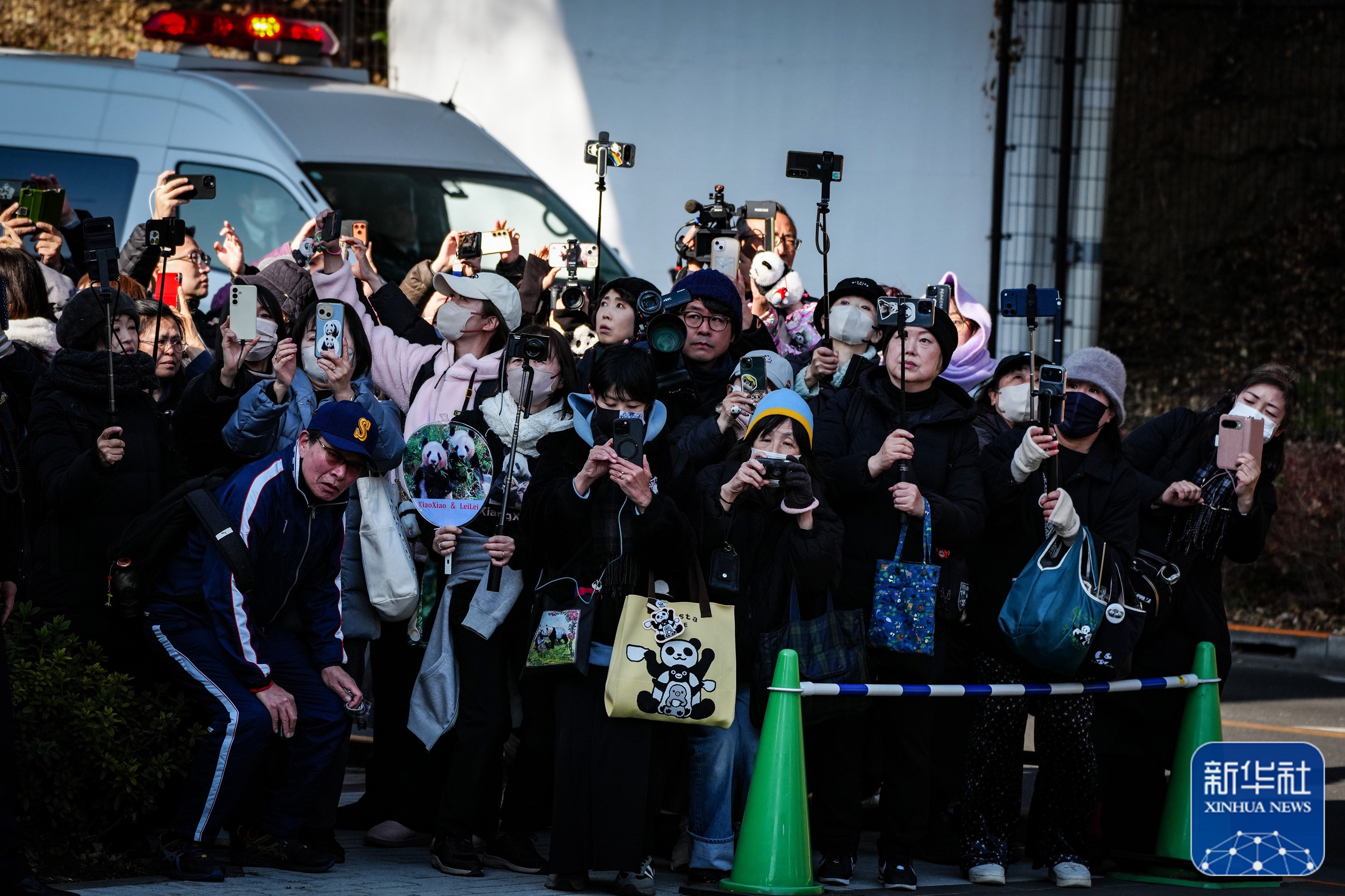 1月27日,当地民众在日本东京上野动物园外送别大熊猫“晓晓”和“蕾蕾”。新华社记者 贾浩成 摄